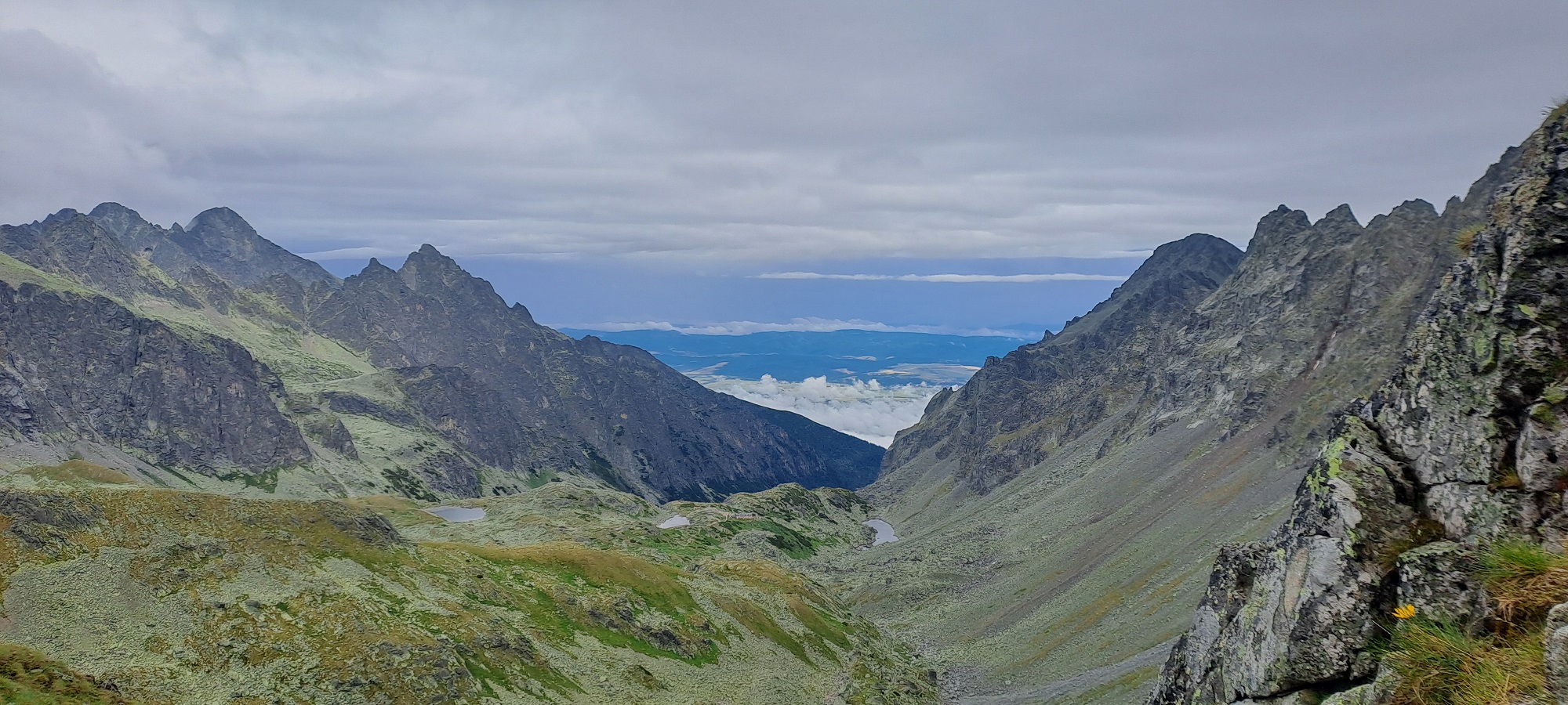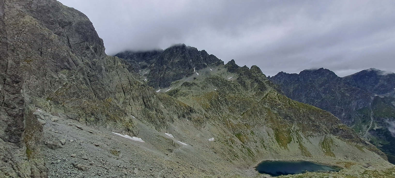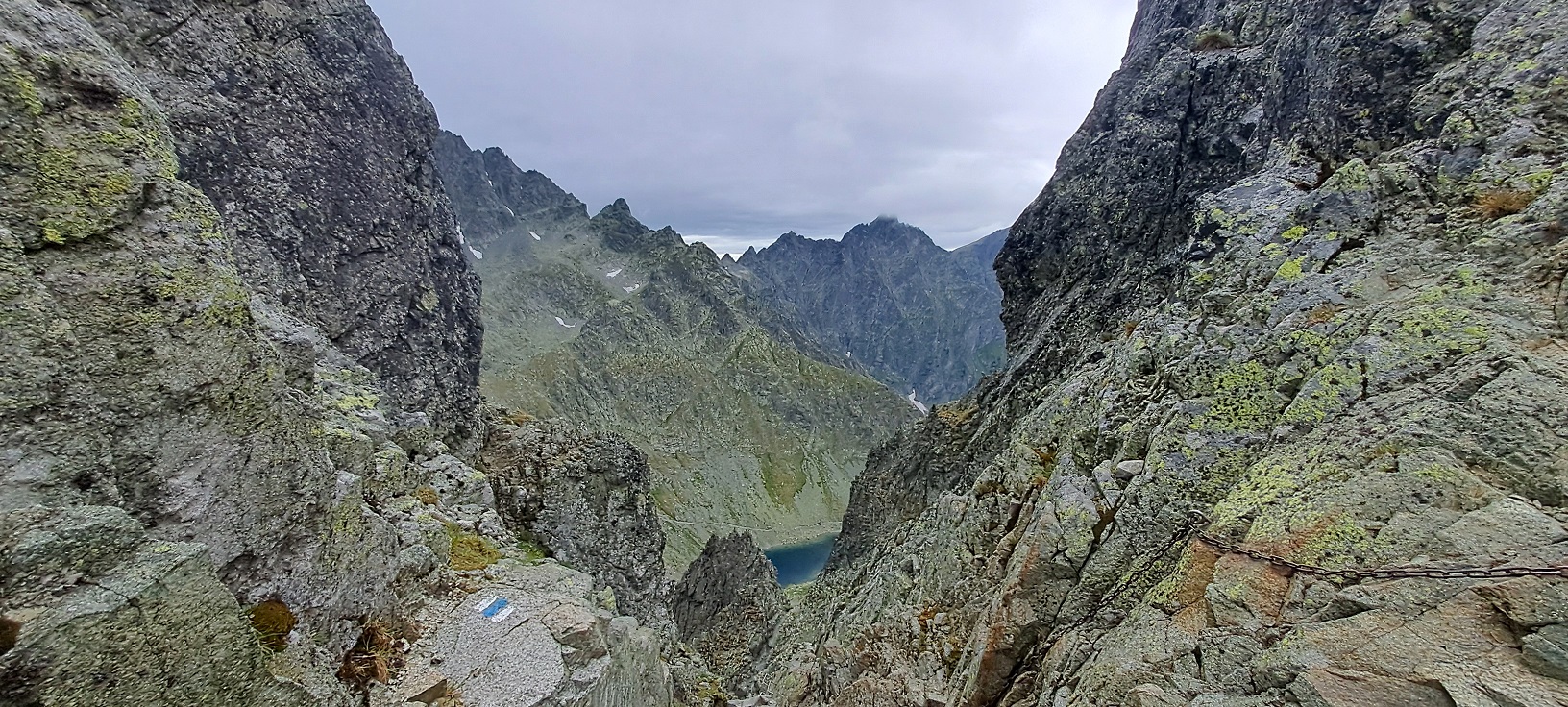 Hiking and climbing tour from Zbojnícka chata (1960 meters AMSL) to Sedlo prielom (Polish: Rohatka, 2290 meters AMSL) in the High Tatras mountain range in Slovakia.