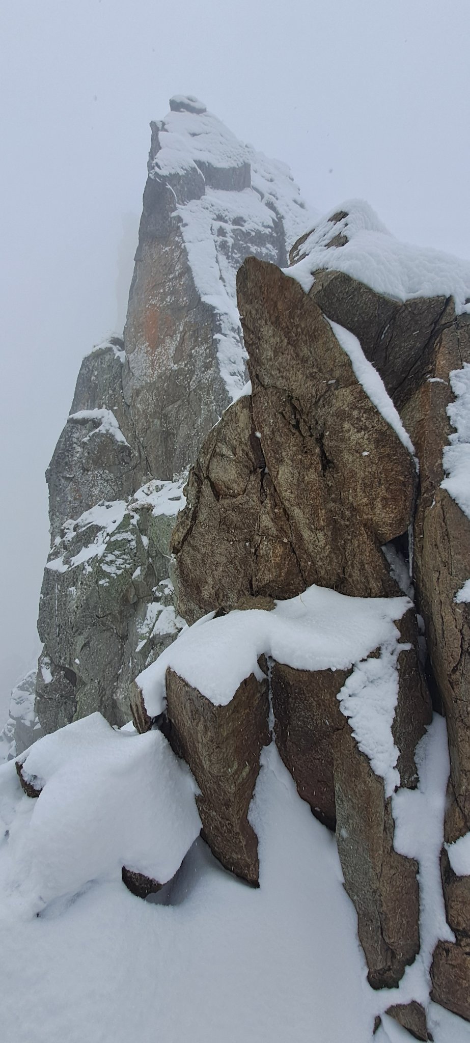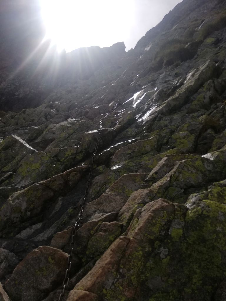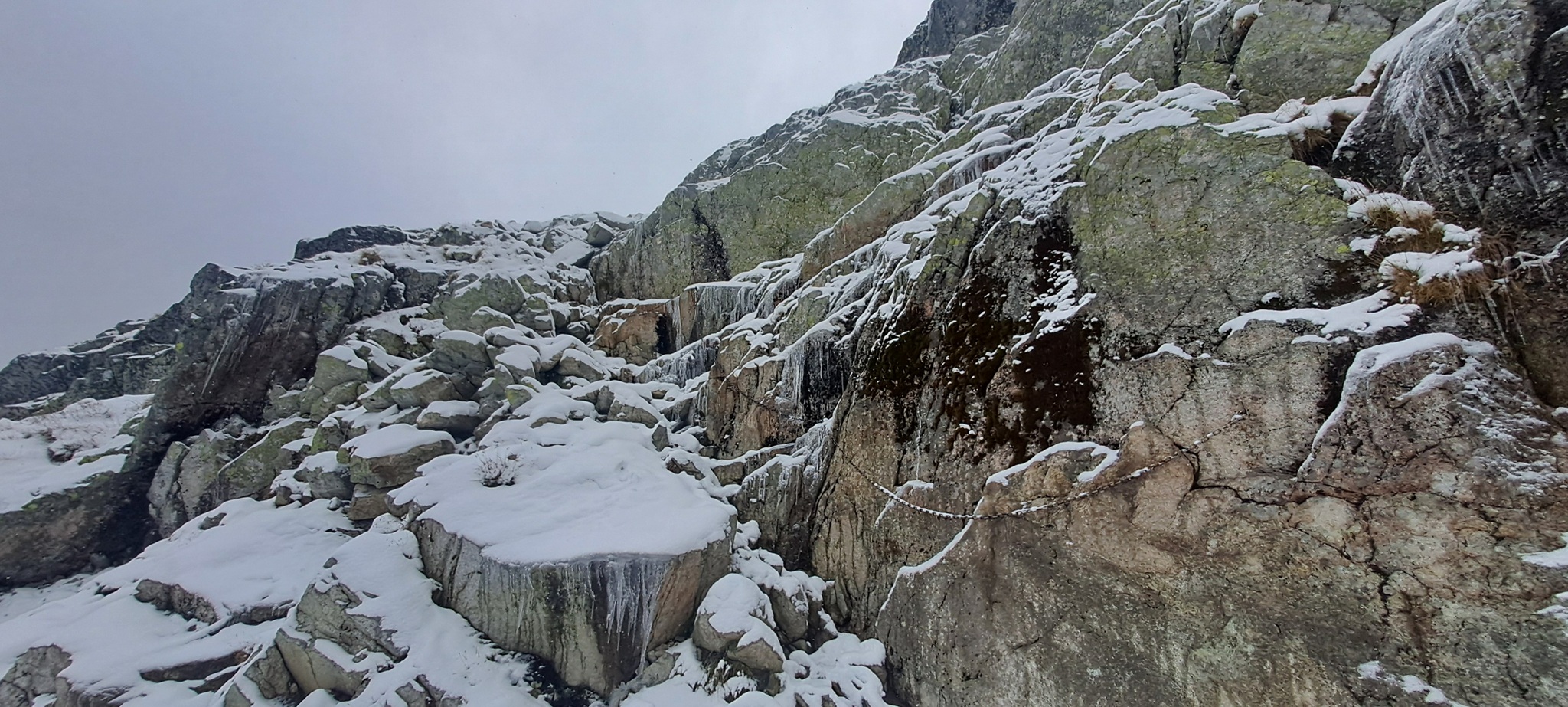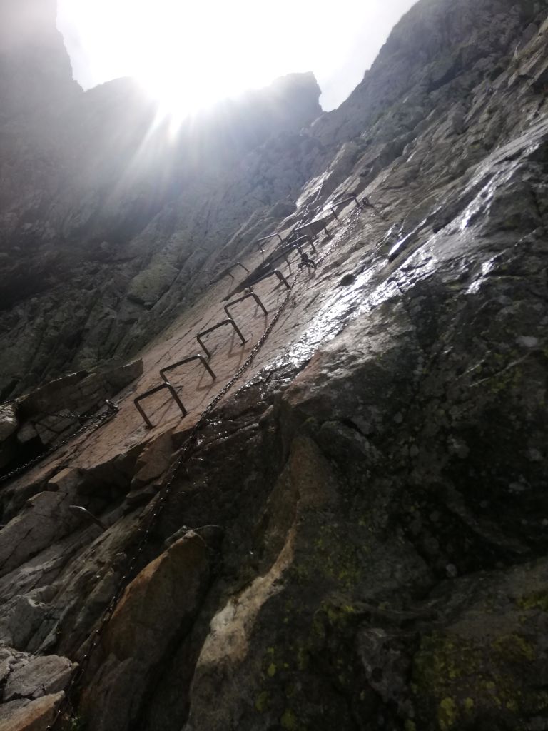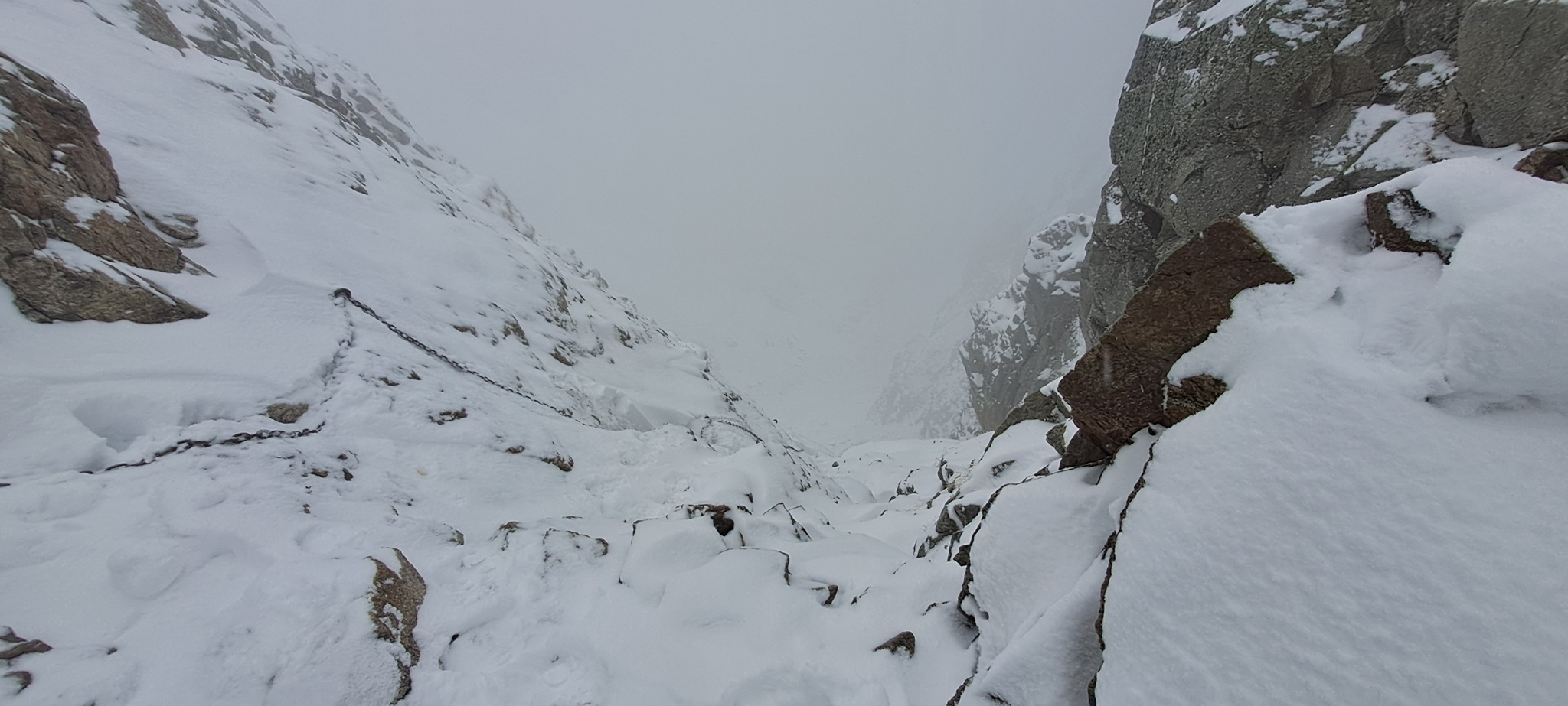 The ascent is not wildly technical (in no place above UIAA II in my estimation, many chains and metal steps attached to the rock), yet some experience certainly does not hurt. Depending on who you ask, the difficulty of this tour ranges from medium to very difficult (it is definititely difficult with snow).