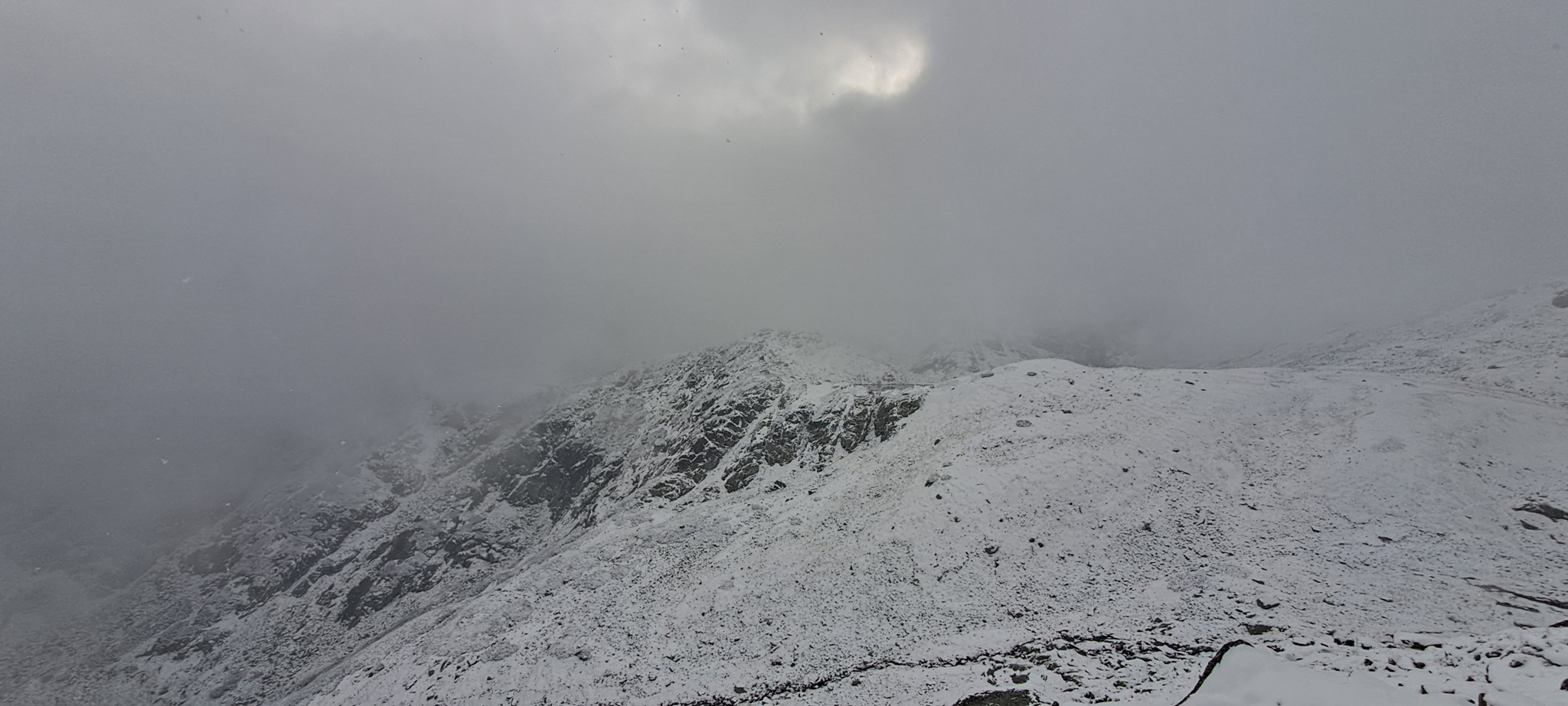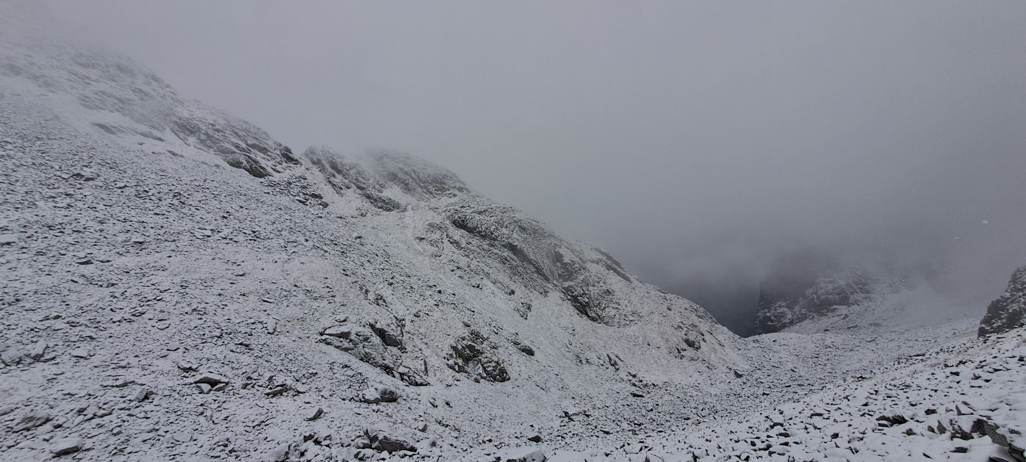 I recommened wearing crampons or spikes on your boots when there is snow on the trail, what is not an unlikely occurrence in early summer or in autumn.