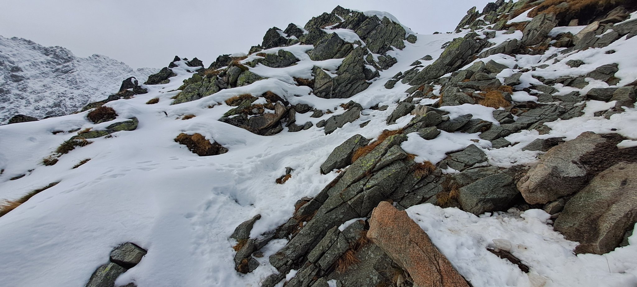 The problems for me on this day and from this point were the transitions between walking on pure rock, icy rock, and snow what made pushing forward a time-consuming endeavour.