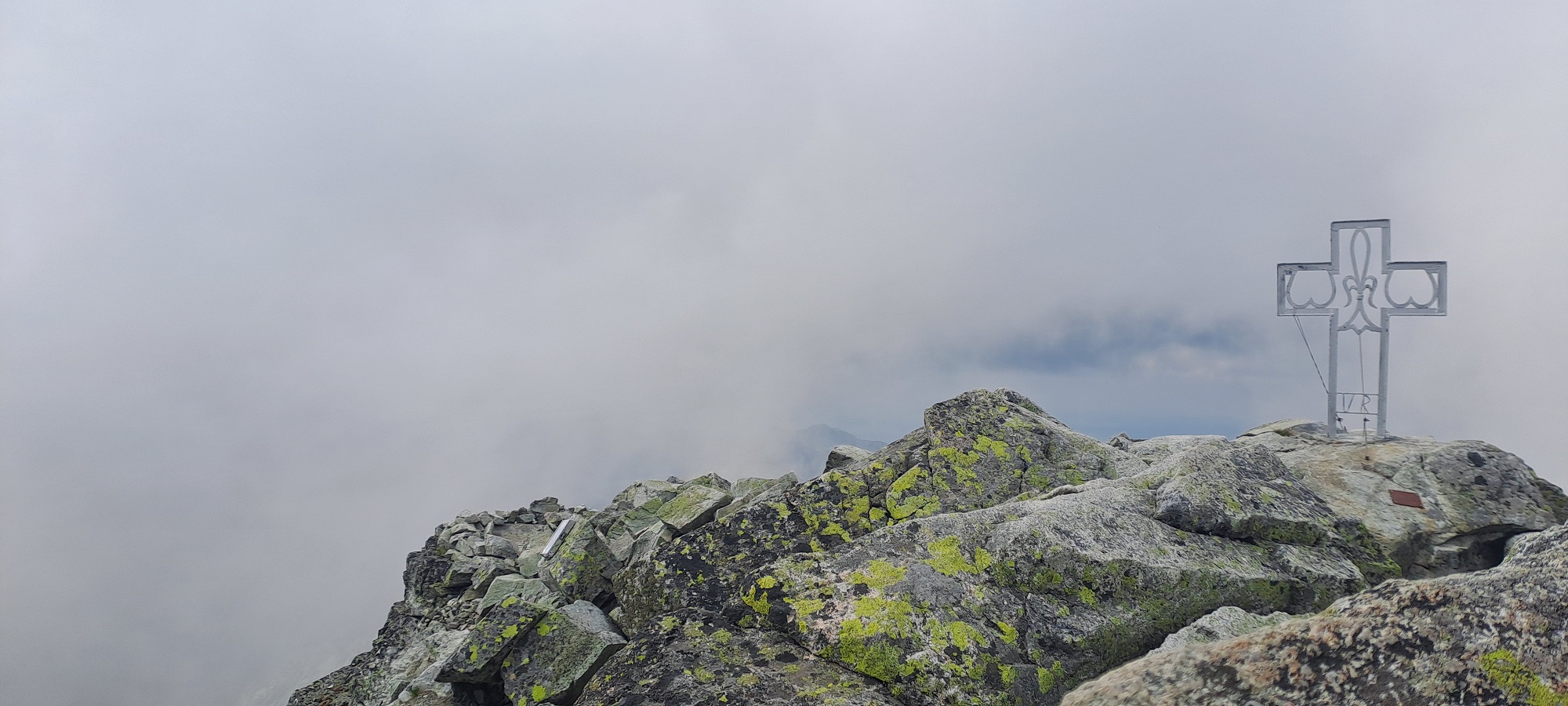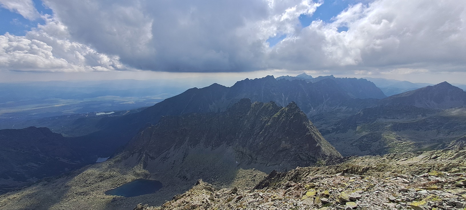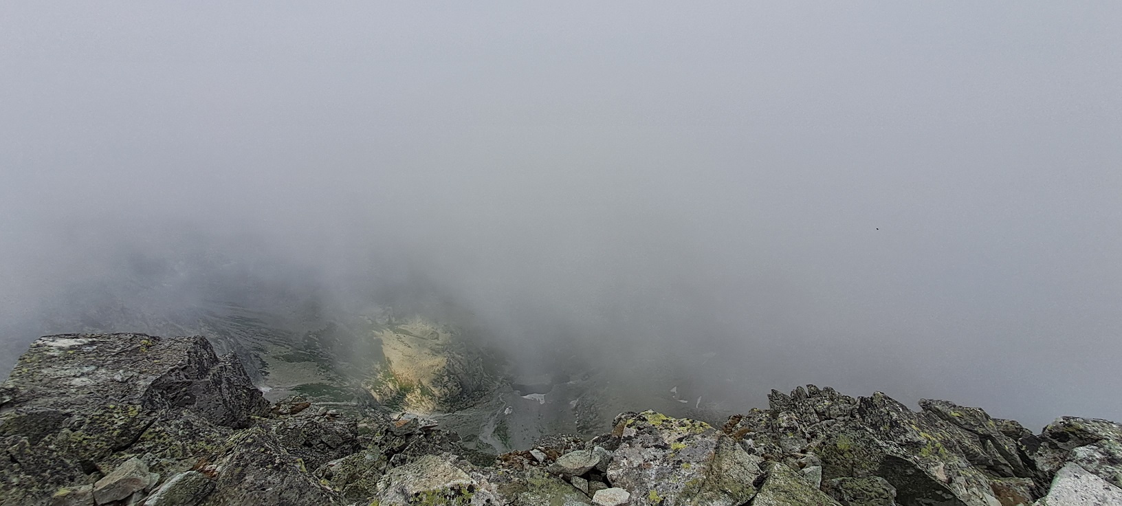Moderately difficult climbing starting at sedlo Váha (2337 meters AMSL), yet in no place above UIAA II+ on the normal route in my estimation (and there is metal such as chains attached to the rock to make it easier).